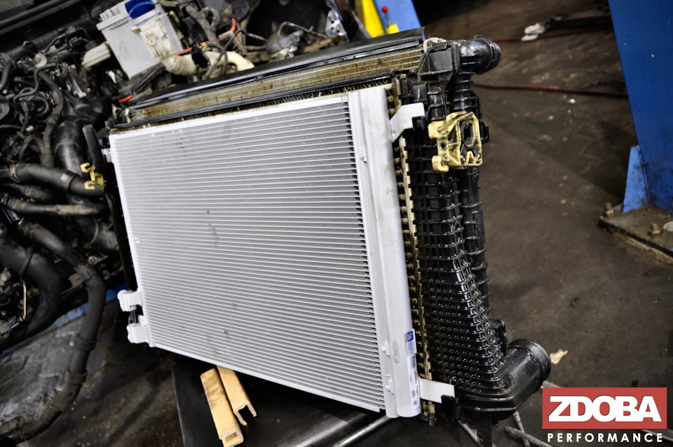 Процесс мойки пакета радиаторов и замена радиатора кондиционера