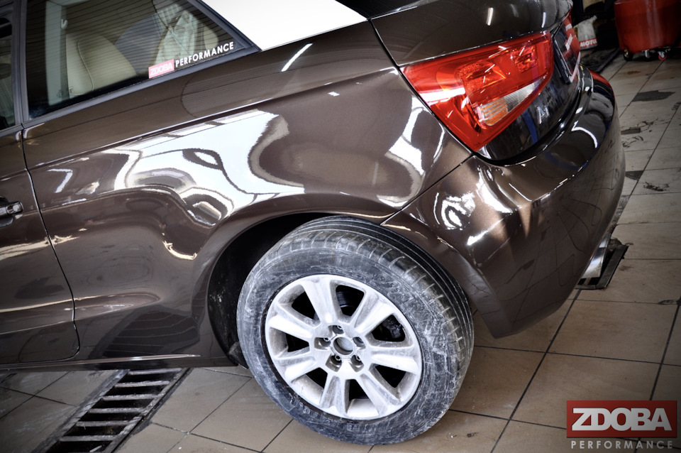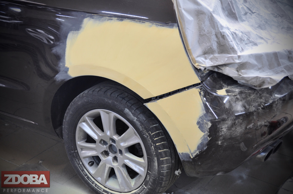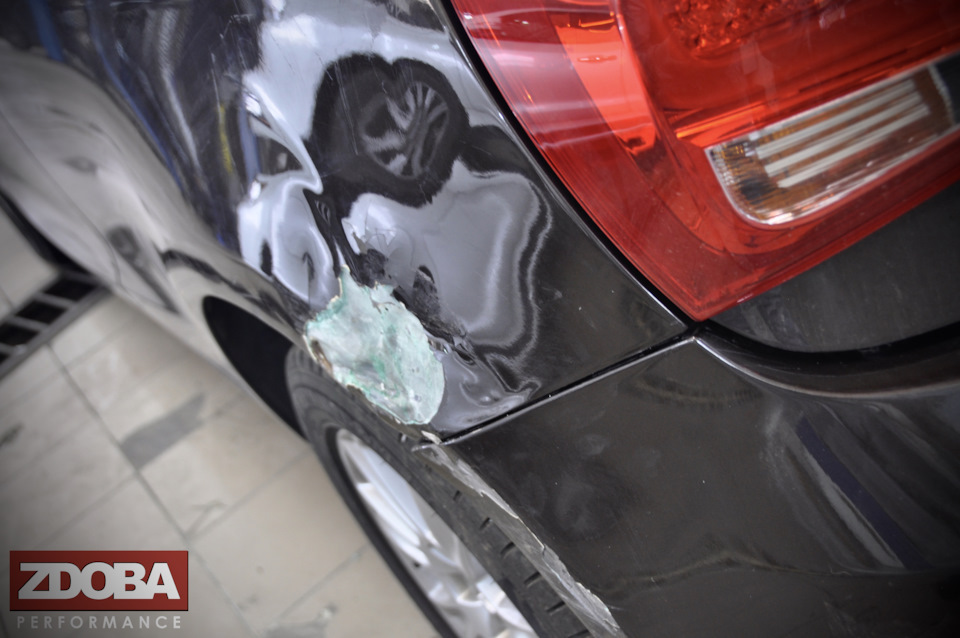 Авто прибыл к нам на работы по ремонту и окрасу заднего крыла и бампера, работы выполнены нашими мастерами ZDOBA Performance