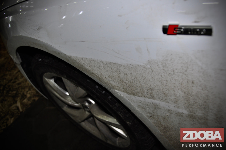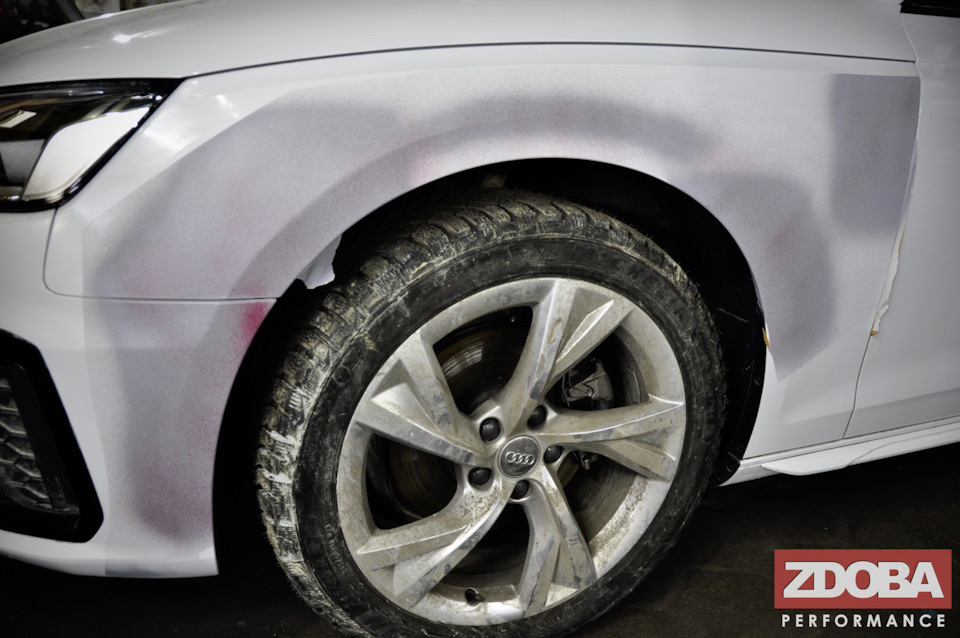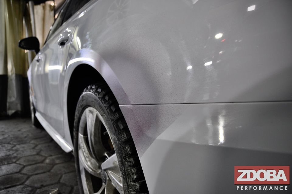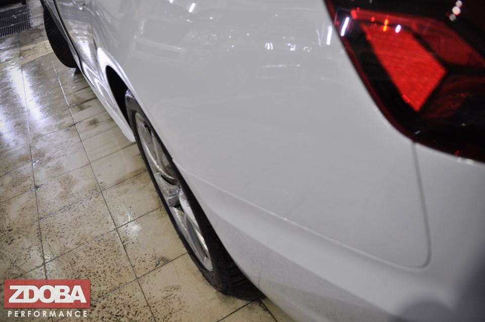 Авто прибыл к нам на работы по ремонту и окрасу крыла переднего и заднего, бампера переднего и заднего, двери, работы выполнены нашими мастерами ZDOBA Performance.