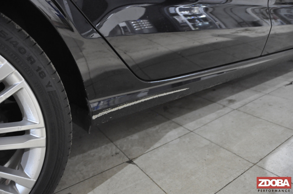 Авто прибыл к нам после встречи порога с бардюром, все повреждения были устранены нашими мастерами ZDOBA Performance.